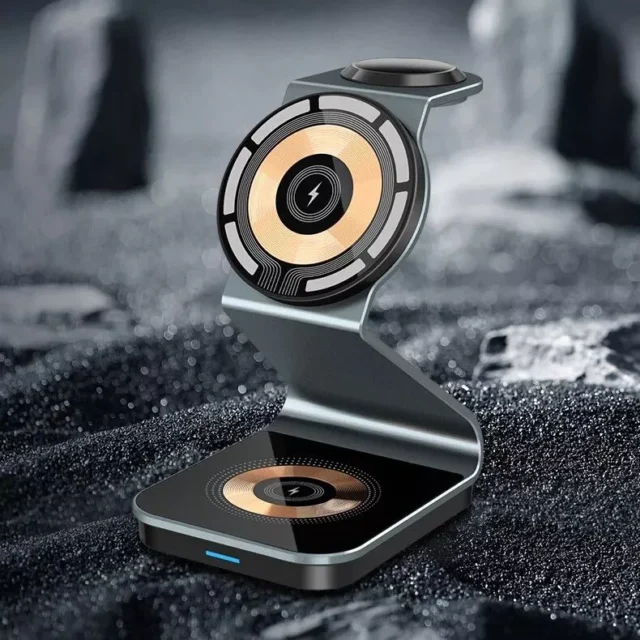 Say goodbye to the clutter of cables and welcome a new era of convenience with our 15W 3-in-1 Magnetic Wireless Charger Stand. Designed to keep your desk neat and your devices charged, this innovative product is a game-changer for Apple users. Whether at home or in the office, experience the simplicity of charging your iPhone, Apple Watch, and AirPods all at once, without the hassle of multiple cords.