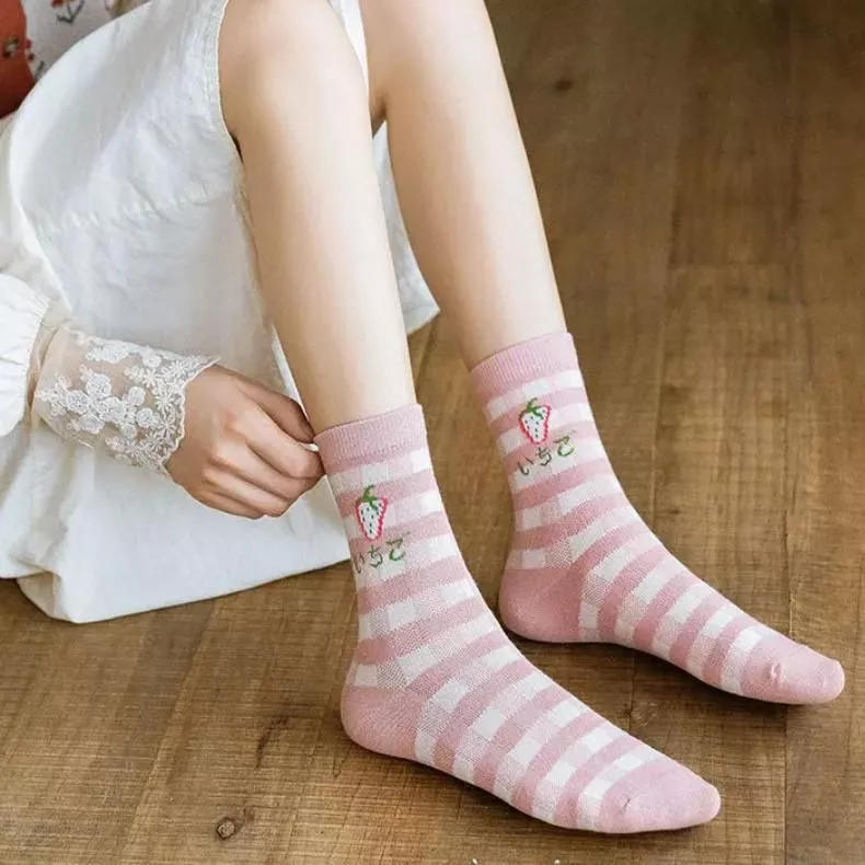 Step into a world where style meets comfort with our Charming Harajuku Kawaii Cotton Socks, adorned with delightful strawberry and floral patterns. Perfect for those who appreciate a touch of whimsy in their wardrobe, these socks are designed to bring a smile to your face and a spring to your step. Crafted from a soft cotton blend, they promise to keep your feet cozy and comfortable all day long.