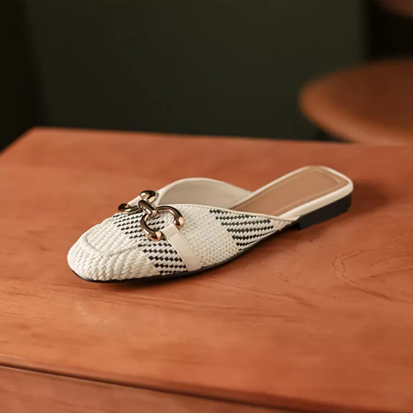 Introducing our latest summer sensation – the Chic Beige Woven Fabric Mules with Metal Accents. Designed for the modern woman who cherishes both style and comfort, these casual summer sandals blend sophistication with a relaxed vibe, making them perfect for any sunny day adventure. Whether you’re strolling through the city streets or lounging at a weekend getaway, these sandals are your ideal companion.