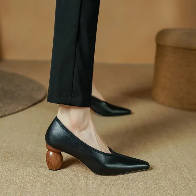 What sets our pumps apart is not just their exquisite design and quality but also their versatility. These shoes are perfect for a wide range of occasions, from daily office wear to special events like parties and weddings. The unique heel not only makes a fashion statement but also provides stability, making them comfortable to wear all day long. With their blend of fashion and function, these pumps are an essential addition to any wardrobe.