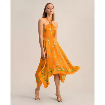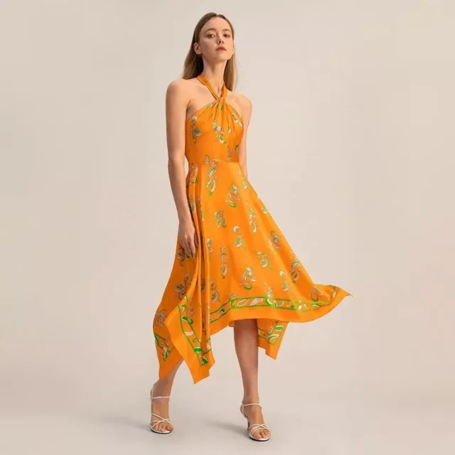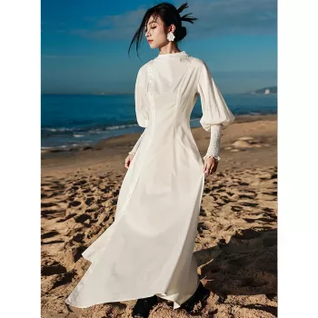 Made from a premium blend of 65% acetate and 35% polyester, this dress boasts a fabric as luxurious as silk, with a smooth feel, bright and beautiful lustre, and exquisite nobility. Its single-breasted design, accented with decorative buttons around the belly, adds a touch of sophistication and charm, making it a standout piece in any wardrobe.