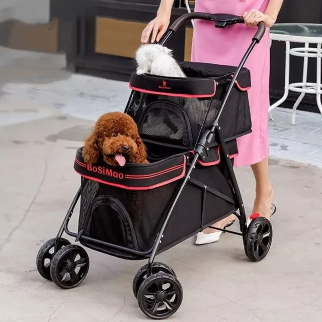 Our pet stroller stands out for its strong metal construction and windproof feature, ensuring your pet’s comfort and security no matter the weather. It’s not just a stroller; it’s also a detachable backpack, giving you two convenient options for carrying your pet. The solid pattern and fashionable design will make your pet the center of attention, while the collapsible nature allows for effortless storage and mobility. Suitable for all seasons, this stroller/backpack combo is your go-to for both short jaunts and longer journeys, ensuring your pet is always traveling in style and comfort.