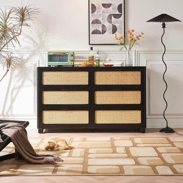 Crafted from high-quality density board and fiberboard, this sideboard promises durability and longevity. The manmade board construction ensures a stable and sturdy piece of furniture that stands up to daily use. Whether you’re showcasing your favorite dishes, storing linens, or organizing kitchen essentials, this cabinet provides ample space and functionality to meet all your storage needs.