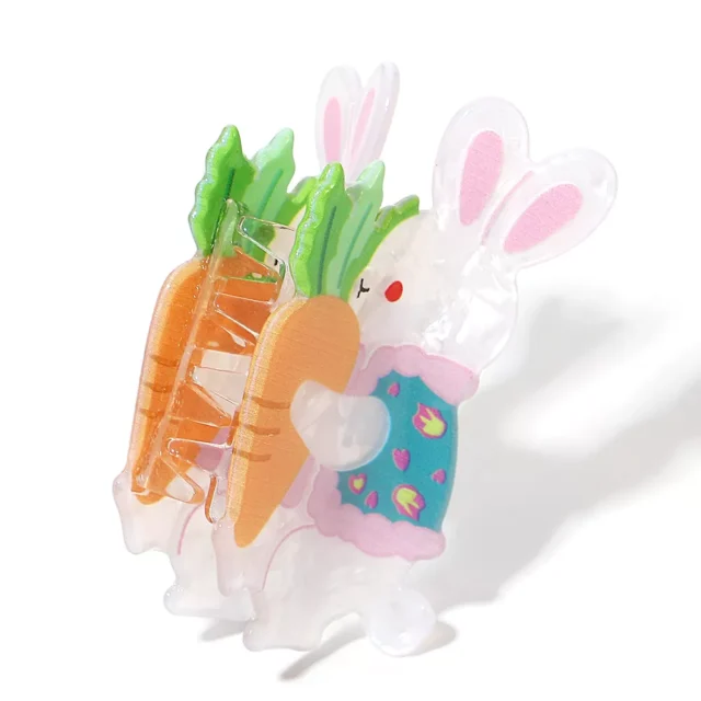 This hair clip is special because it transforms whimsical storytelling into wearable art. The charming design features a sweet rabbit character clutching a radish with such detail you can almost see its happy expression. What makes it truly special is the creative originality of the design—this isn’t just another animal clip, but a unique scene that captures imagination and personality. The high-quality acrylic construction ensures the delicate details remain crisp and clear, while the strong claw mechanism provides practical functionality. It’s this perfect balance of artistic creativity, quality materials, and everyday usability that makes it exceptional.