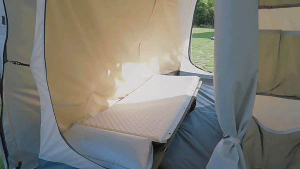Every year, my big family and I hit the outdoors for a camping trip. My little ones and their cousins always end up wanting to crash in my tent, which had me looking for something more spacious. I'm a tall guy, about 5’10”, and standing up straight in this tent isn't an issue, especially in the main section. We managed to fit a queen mattress on each side, threw up the divider, and voila – space for everyone. Plus, it's a fortress against bugs, which was a lifesaver during a caterpillar and daddy long legs invasion at our campsite. Setting it up is a breeze, seriously simple. I'd recommend it in a heartbeat for anyone needing extra room. It's great for storing all your gear and staying organized. Even solo, I got it standing in under half an hour without peeping at the instructions, and it's gotten faster since. Durability’s top-notch too; survived kids storming in and out and a massive rainstorm without a leak, while others weren't so lucky.