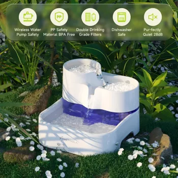 This water fountain is more than just a hydration station; it’s a smart, energy-efficient device designed with your pet’s well-being in mind. The separation of water and electricity ensures safety, while the ultra-quiet operation keeps your home peaceful. With its advanced filtration and smart sensing capabilities, this fountain offers your pet fresh, clean water at all times.